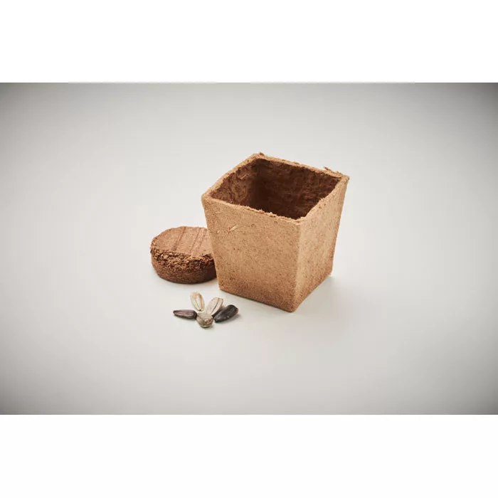 Biológiailag lebomló, tőzeg ültetőcserép napraforgó magokkal. EU-ban készült (Helianthus debilis). Ültetőközeg koronggal szállítjuk.