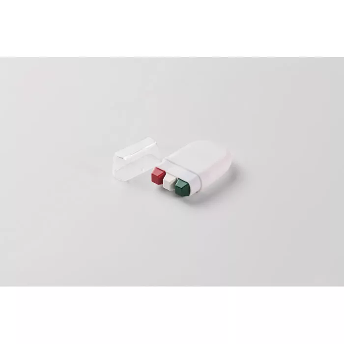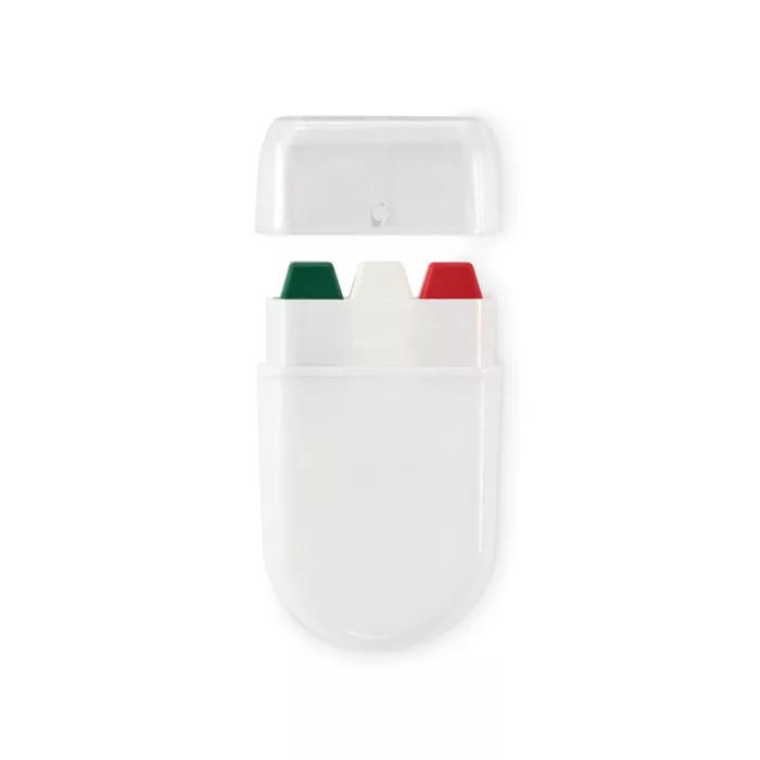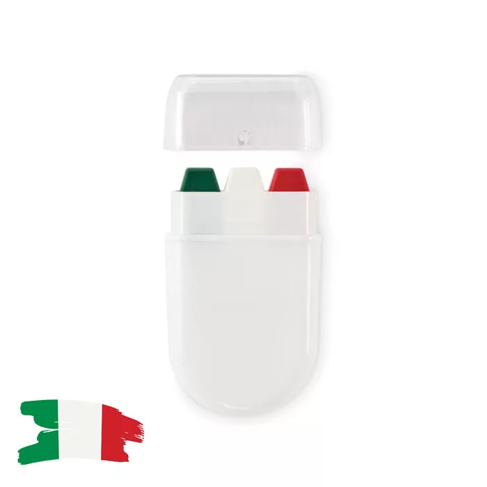 Testfestő stift nemzeti zászlók színeiben. Viaszfesték PP tokban, PS kupakkal.