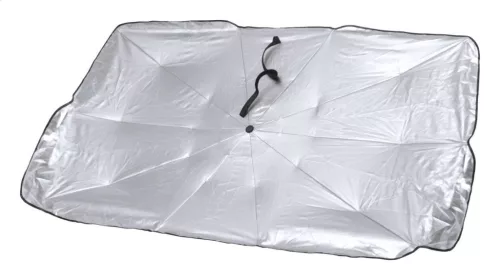 Kihajtható autós napellenző ernyő szélvédőre fém szegéllyel, poliészter tasakban.
