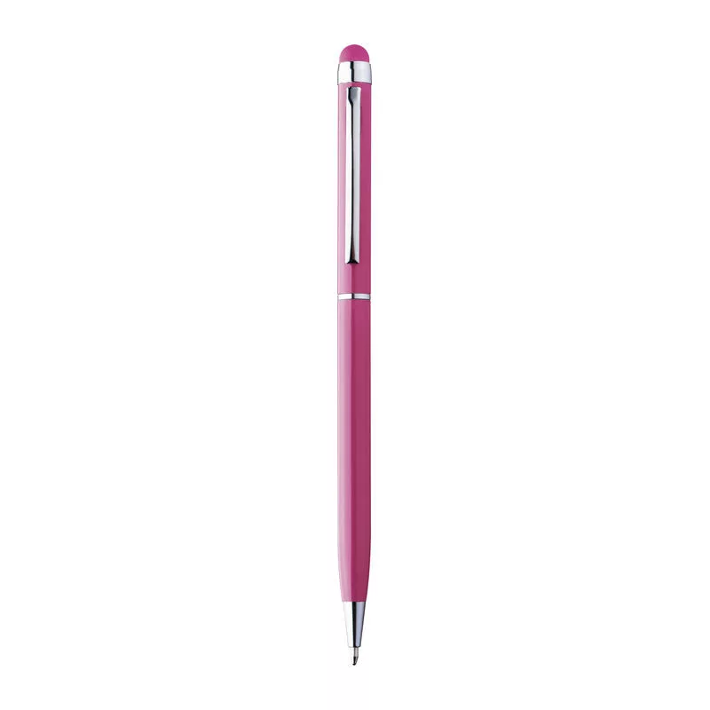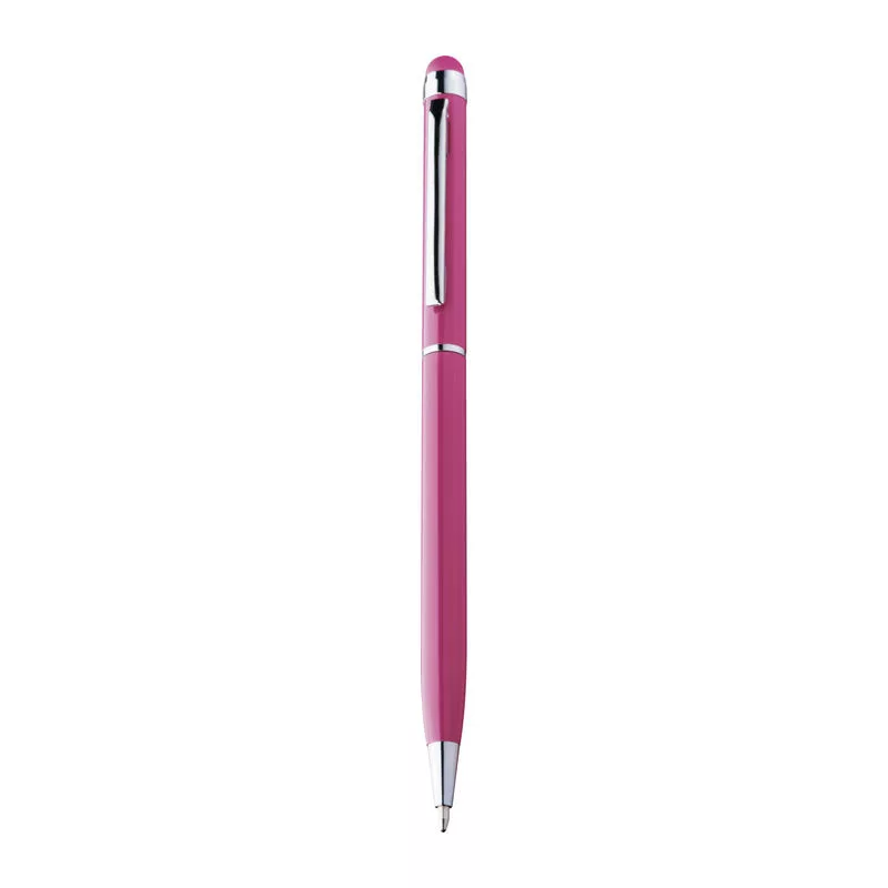 Alumíniumból készült csavaros mechanizmusú fém golyóstoll, érintőképernyős funkcióval, kék tollbetéttel, mely több színben rendelhető.
