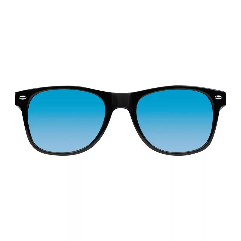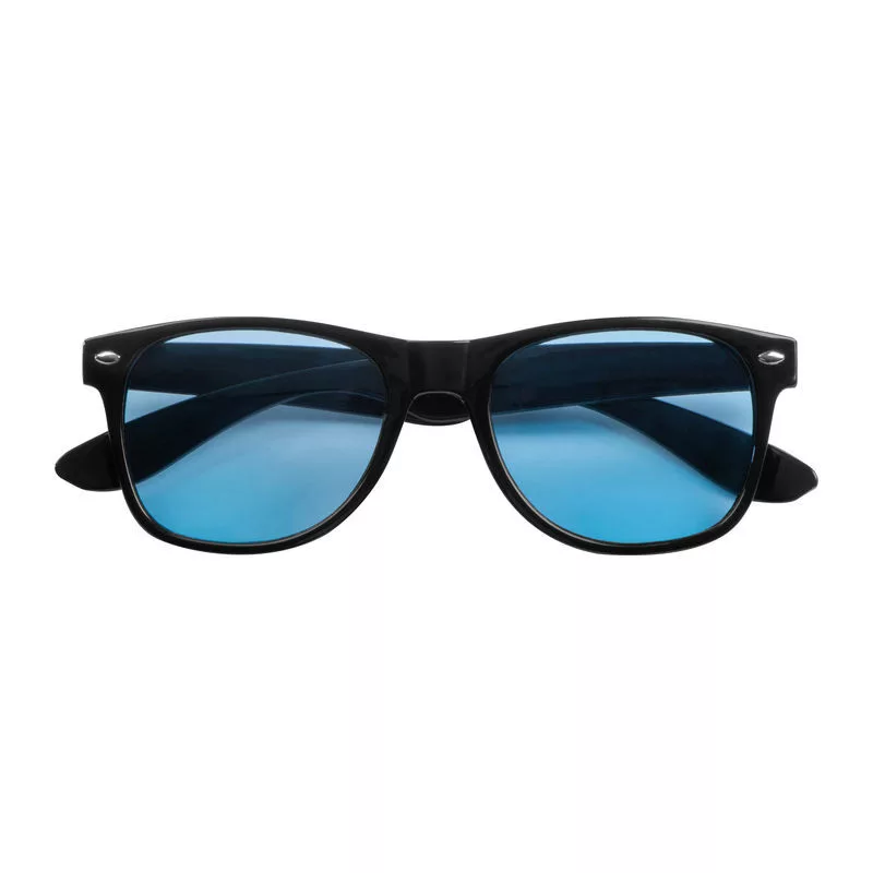 Napszemüveg UV400-as szűrővel, színes lencsével és műanyag kerettel.