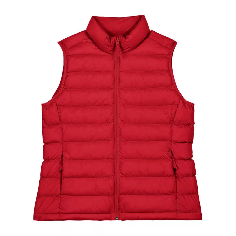 Ujjatlan kialakítás. Magas gallér. Fordított nejlon cipzár elöl, középen. Cipzáras zsebek díszszalaggal ellátott húzóval. Rugalmas szegőszalag a karkivágásnál. Teljesen steppelt kivitel. Oldalpanelek a jobb illeszkedésért. A belső varratok szegéllyel eldolgozva. Az alsó szegély állítható műanyag záróval és rugalmas zsinórral.