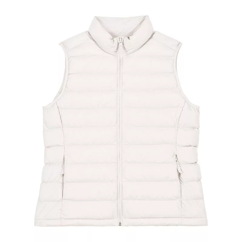 Ujjatlan kialakítás. Magas gallér. Fordított nejlon cipzár elöl, középen. Cipzáras zsebek díszszalaggal ellátott húzóval. Rugalmas szegőszalag a karkivágásnál. Teljesen steppelt kivitel. Oldalpanelek a jobb illeszkedésért. A belső varratok szegéllyel eldolgozva. Az alsó szegély állítható műanyag záróval és rugalmas zsinórral.