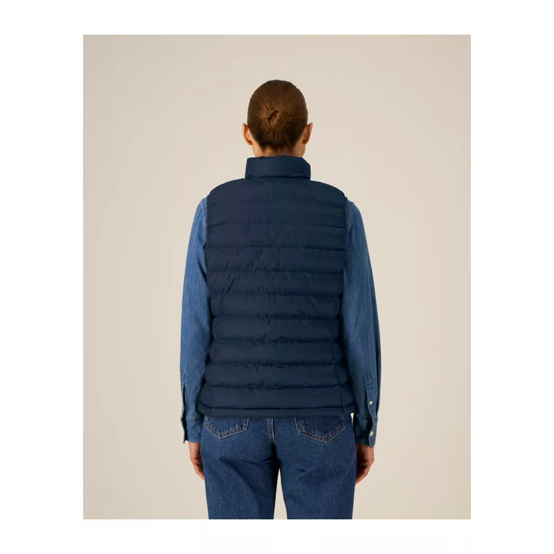 Ujjatlan kialakítás. Magas gallér. Fordított nejlon cipzár elöl, középen. Cipzáras zsebek díszszalaggal ellátott húzóval. Rugalmas szegőszalag a karkivágásnál. Teljesen steppelt kivitel. Oldalpanelek a jobb illeszkedésért. A belső varratok szegéllyel eldolgozva. Az alsó szegély állítható műanyag záróval és rugalmas zsinórral.