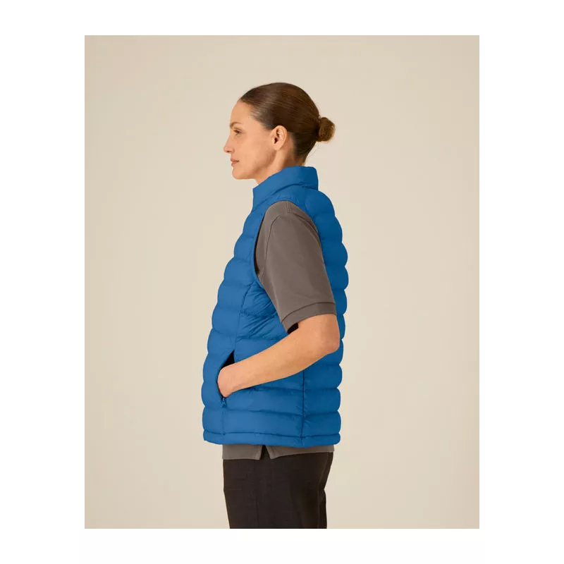 Ujjatlan kialakítás. Magas gallér. Fordított nejlon cipzár elöl, középen. Cipzáras zsebek díszszalaggal ellátott húzóval. Rugalmas szegőszalag a karkivágásnál. Teljesen steppelt kivitel. Oldalpanelek a jobb illeszkedésért. A belső varratok szegéllyel eldolgozva. Az alsó szegély állítható műanyag záróval és rugalmas zsinórral.