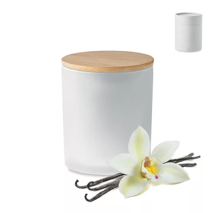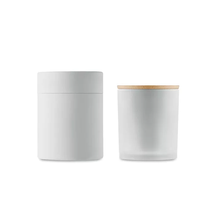 Növényi alapú illatgyertya bambuszfedeles matt üvegtartóban. 120 g. Égési idő: 20 óra. Hengeres papír ajándékdobozban szállítjuk. Lazítson otthonában és teremtsen wellness hangulatot ezekkel a természetes viaszgyertyákkal. Ezek az illatok pihentető környezetet teremtenek, így nagyszerű és figyelmes ajándékok. A következő illatokban kapható (a színkód az illatot jelzi): szantálfa (03), fahéj (02), vanília (06) és jázmin (09).