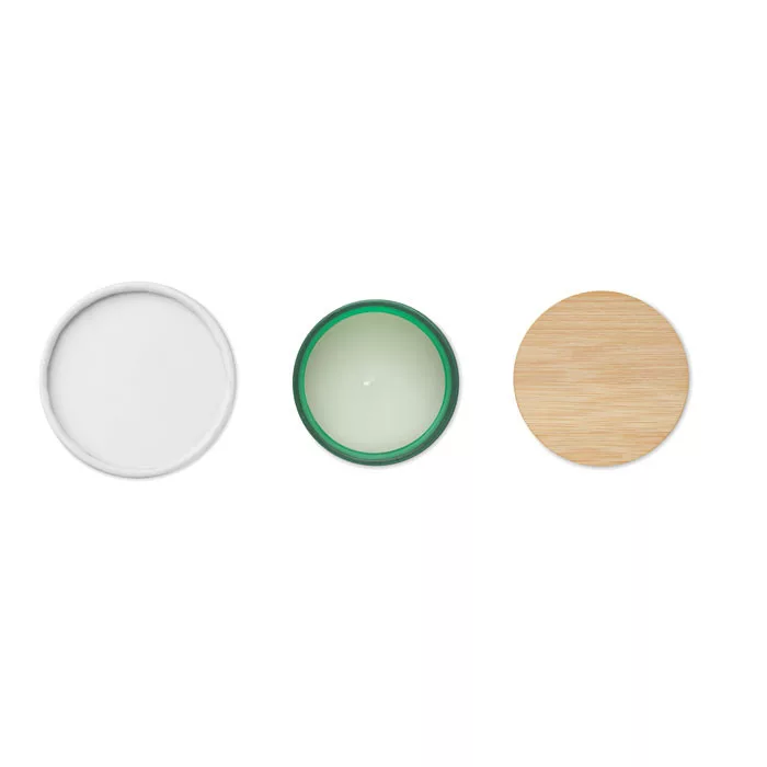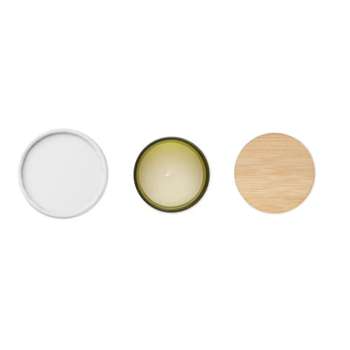 Növényi alapú illatgyertya bambuszfedeles matt üvegtartóban. 120 g. Égési idő: 20 óra. Hengeres papír ajándékdobozban szállítjuk. Lazítson otthonában és teremtsen wellness hangulatot ezekkel a természetes viaszgyertyákkal. Ezek az illatok pihentető környezetet teremtenek, így nagyszerű és figyelmes ajándékok. A következő illatokban kapható (a színkód az illatot jelzi): szantálfa (03), fahéj (02), vanília (06) és jázmin (09).
