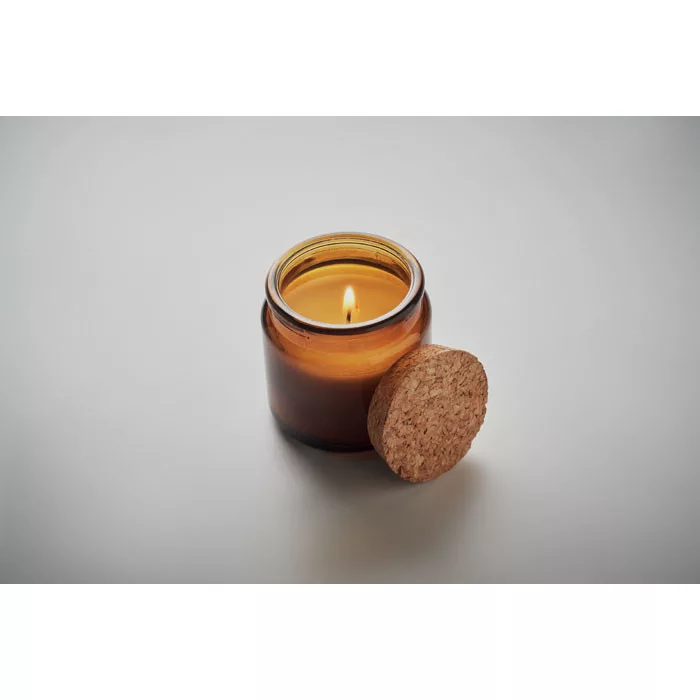 Vanília illatú, növényi alapú viaszgyertya üveg tartóban, parafa fedővel. 70 g. Égési idő 12 óra.
