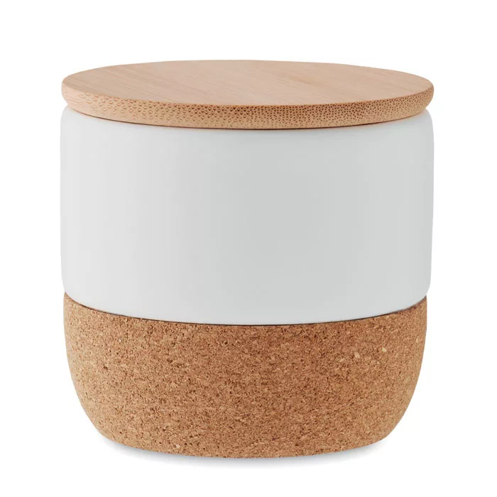 Illatosított növényi alapú viaszgyertya kőcserép tartóban, bambuszfedéllel, parafa aljjal. 80 g. Égési idő: 7,5 óra. Illat: frissen mosott ruha. A bambusz természetes anyag, színében, mintázatában és méretében esetenként eltérő lehet. Szivárgásmentes.