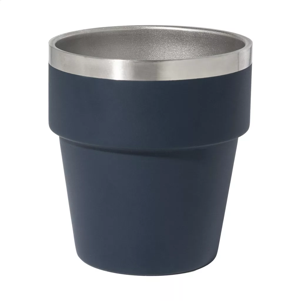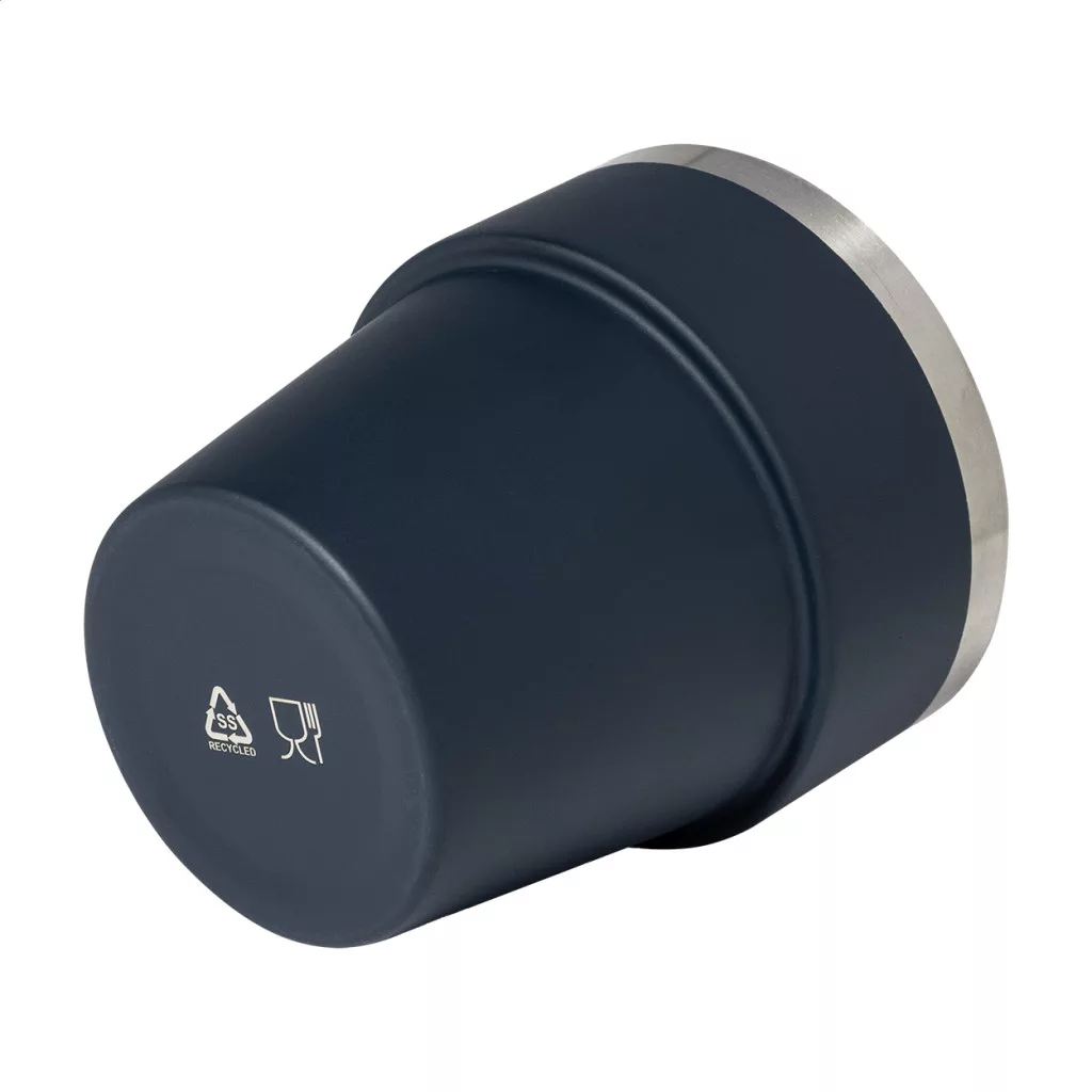 Duplafalú, újrahasznosított rozsdamentes acélból készült thermo pohár, 250 ml. Egymásra rakható.