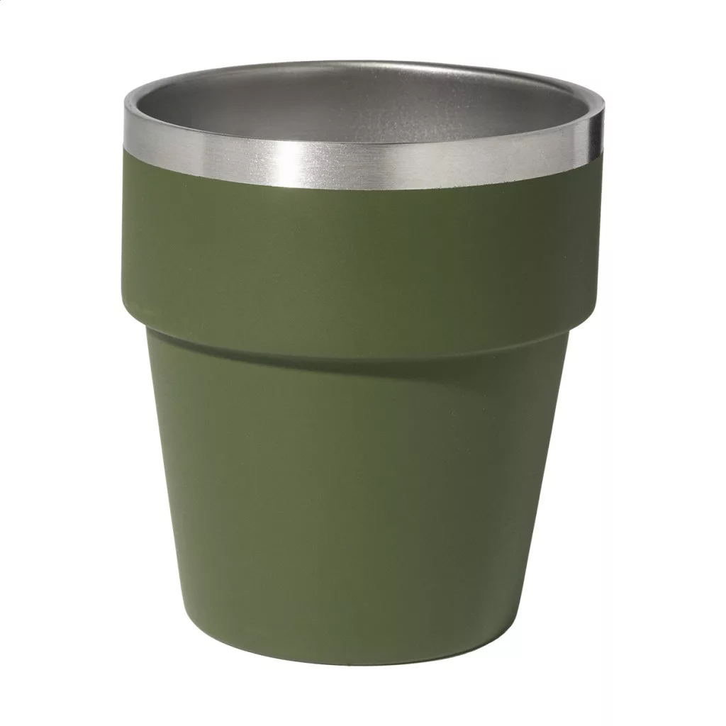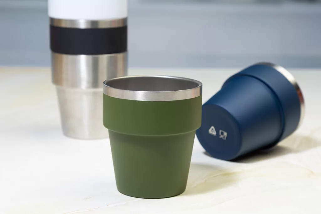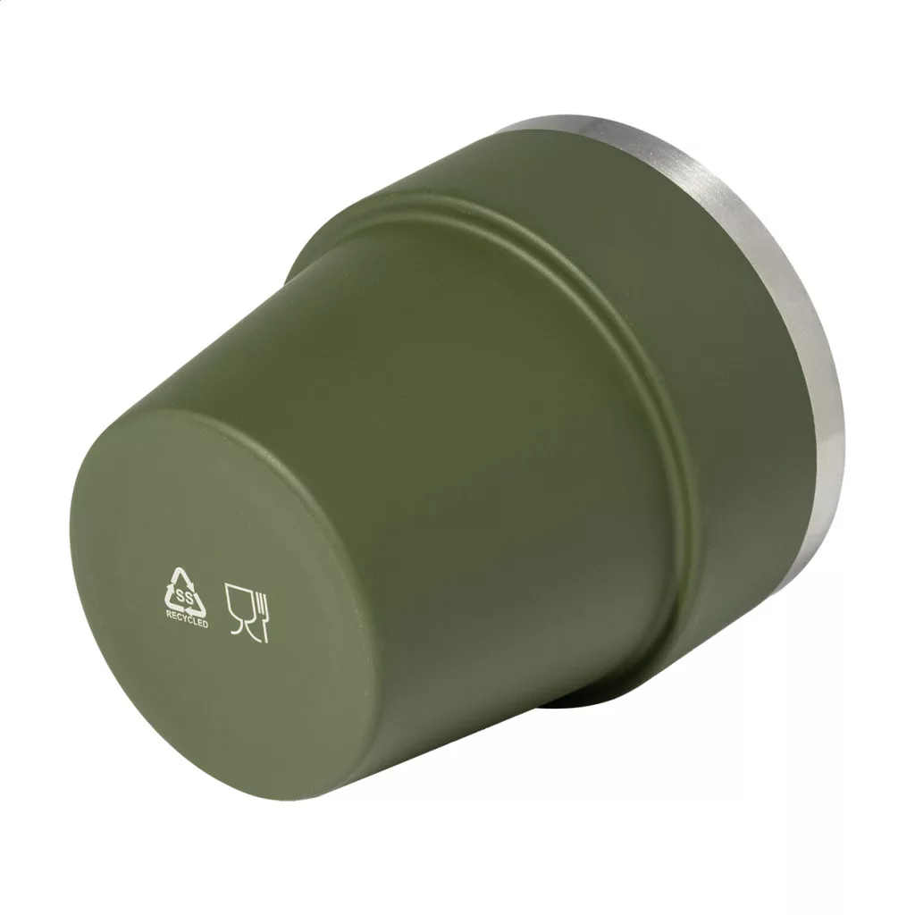 Duplafalú, újrahasznosított rozsdamentes acélból készült thermo pohár, 250 ml. Egymásra rakható.