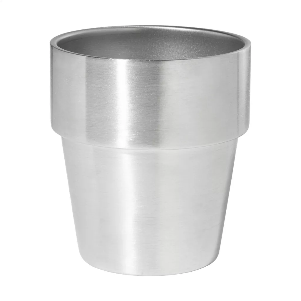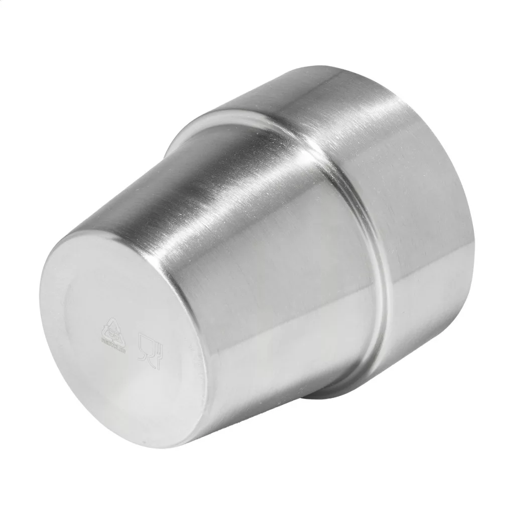 Duplafalú, újrahasznosított rozsdamentes acélból készült thermo pohár, 250 ml. Egymásra rakható.