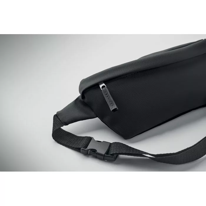 Övtáska PU bevonatú 600D RPET poliészterből, 210D RPET poliészter béléssel és cipzáras elülső zsebbel.