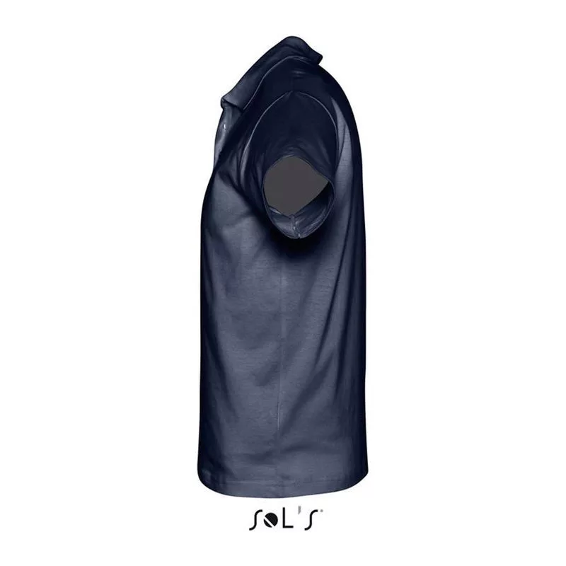 100% félig fésült gyűrűs fonású pamut. Stílus. A nyakán szalaggal megerősítve. Bordázott gallér. Rövid ujjú. 3 színazonos gomb. Pótgomb a belső varráson.