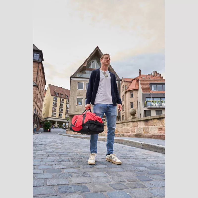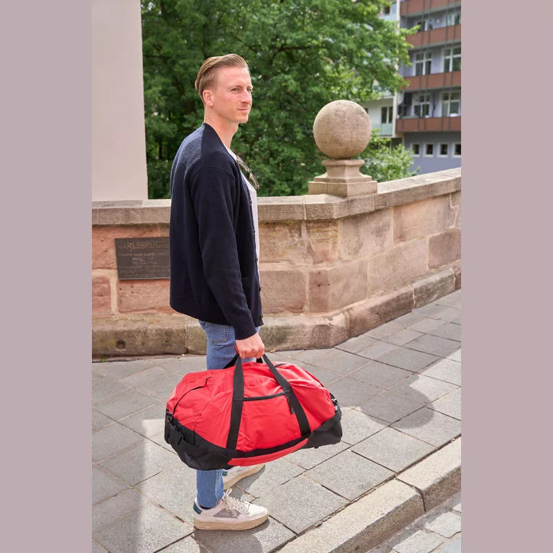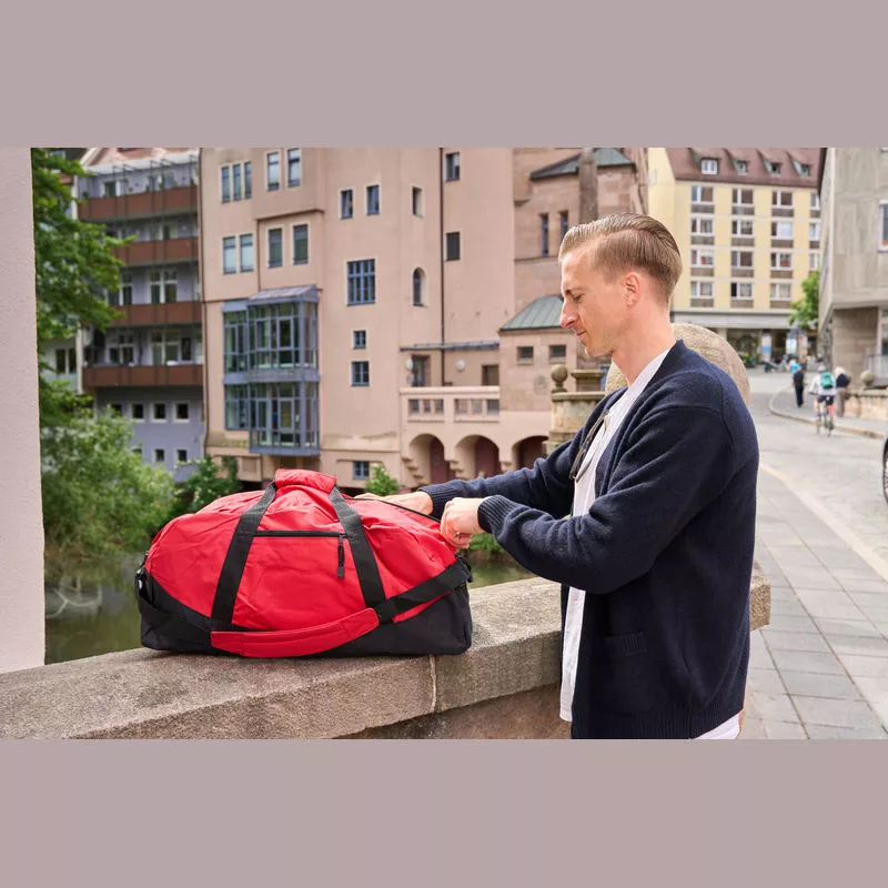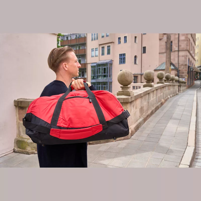 600D poliészterből készült utazó és sporttáska, eltávolítható párnázott vállpánttal, nagy tároló rekesszel, cipzáras zsebbel az oldalán.