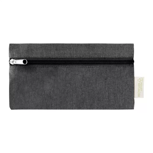 Cipzáras, újrahasznosított pamut tolltartó megkülönböztető címkével. 100% újrahasznosított pamut.