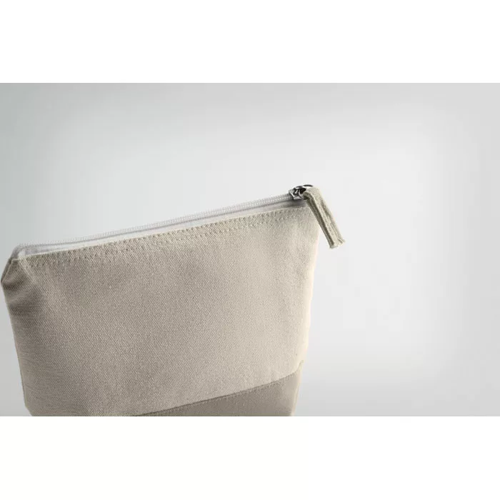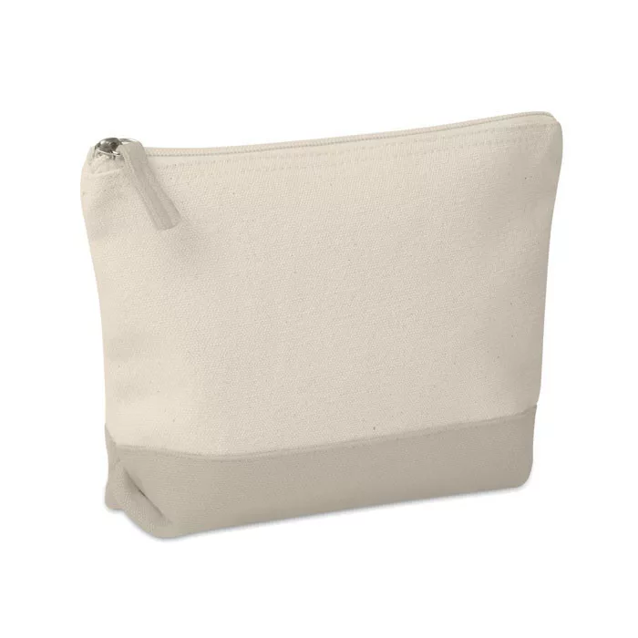 Kozmetikai táska 340 g vastag pamutvászonból, színes aljjal és cipzárhúzóval.