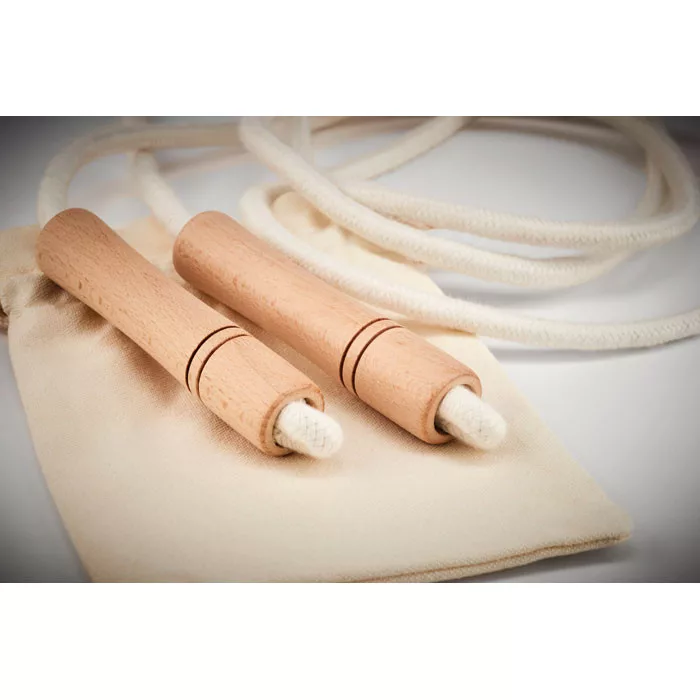 Maradjon aktív ezzel a pamut ugrókötéllel. Az ugrókötelezés nagyszerű mozgásforma a test edzésére és a fittség megőrzésére. Az ugrókötél mutatós megjelenést és kényelmes fogást biztosító, fából készült fogantyúkkal rendelkezik. A kötelet pamut tasakban szállítjuk a könnyű tárolás és hordozhatóság érdekében.