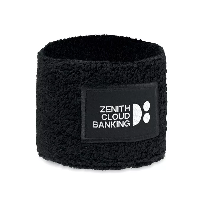 Csuklópánt poliészter-pamut kevert szálas anyagból (79% pamut, 13% elasztán, 8% poliészter), emblémázható pamut felvarróval.