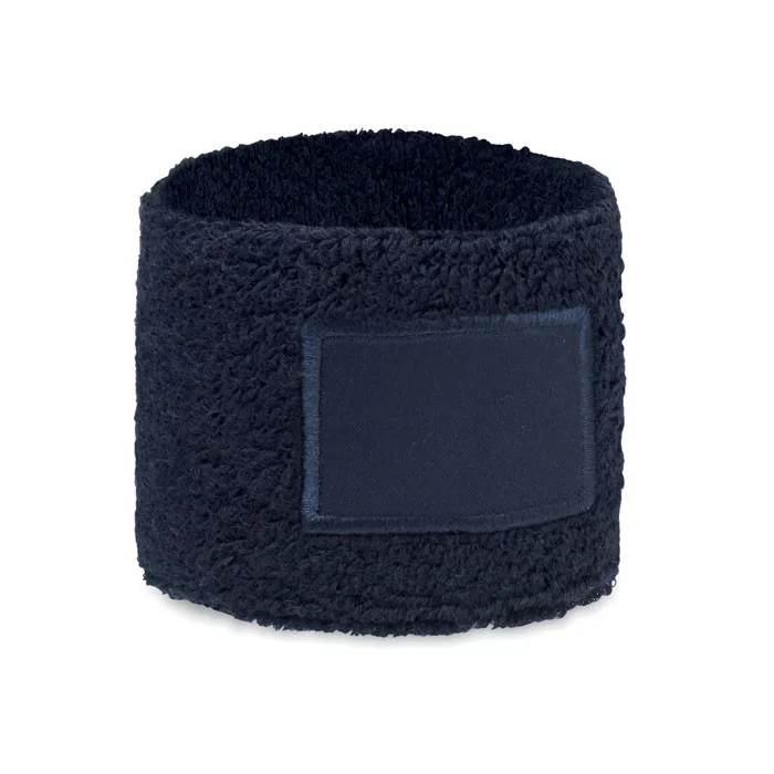 Csuklópánt poliészter-pamut kevert szálas anyagból (79% pamut, 13% elasztán, 8% poliészter), emblémázható pamut felvarróval.