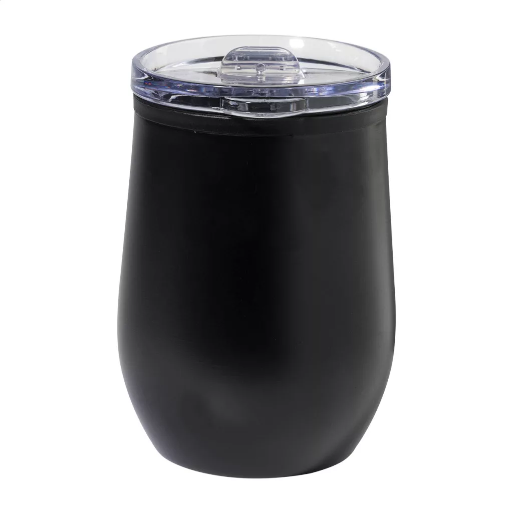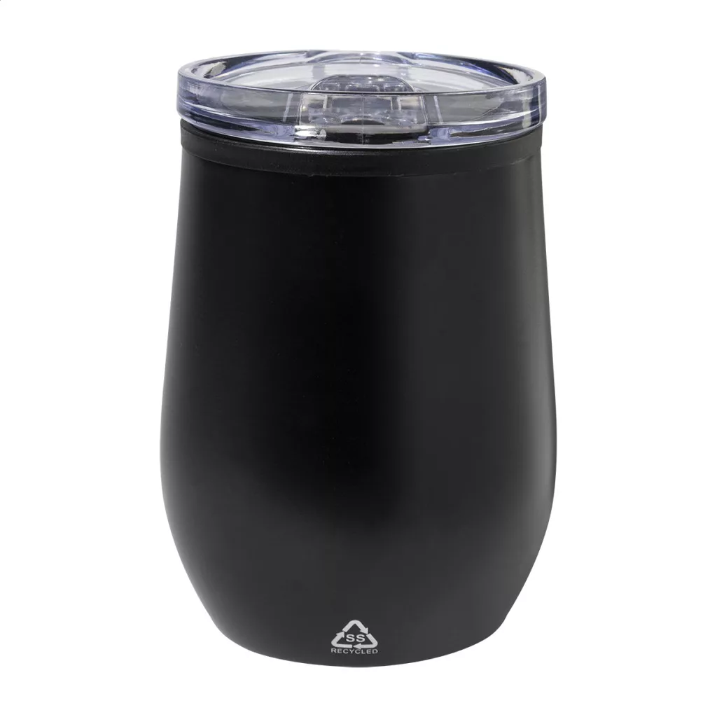 Duplafalú, újrahasznosított rozsdamentes acél thermo pohár PP belső résszel és PS ivófedéllel. 350 ml.