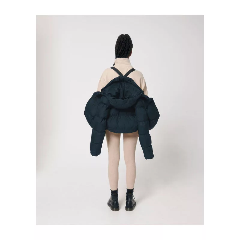 Túlméretezett pufi dzseki. Béléssel ellátott kapucnival, rugalmas szegéllyel és sokoldalú hordozópántokkal rendelkezik. Praktikus zsebekkel és állvédővel a fokozott kényelem érdekében. Ideális választás bármilyen kiránduláshoz.