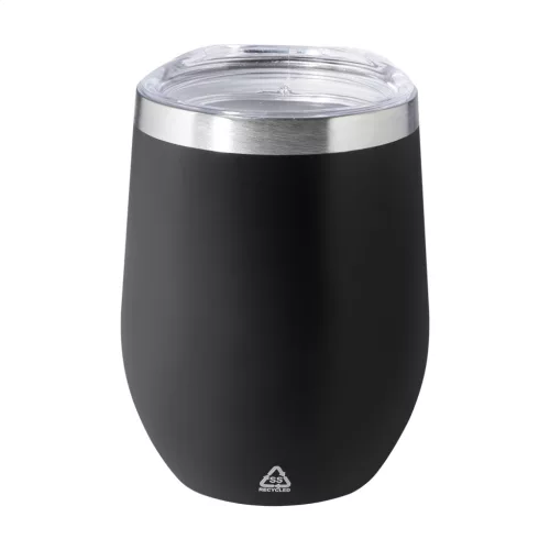 Duplafalú, újrahasznosított rozsdamentes acél thermo pohár műanyag ivófedéllel. 350 ml.