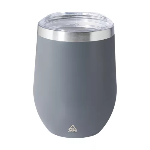 Duplafalú, újrahasznosított rozsdamentes acél thermo pohár műanyag ivófedéllel. 350 ml.