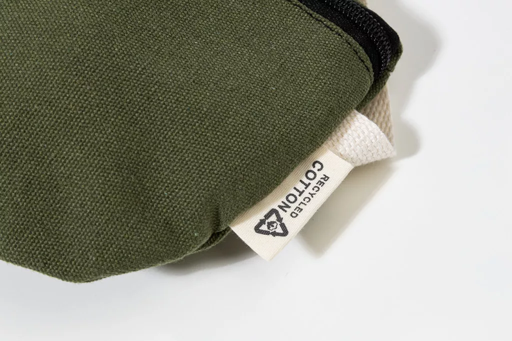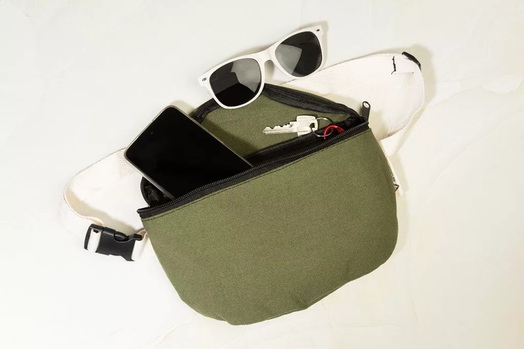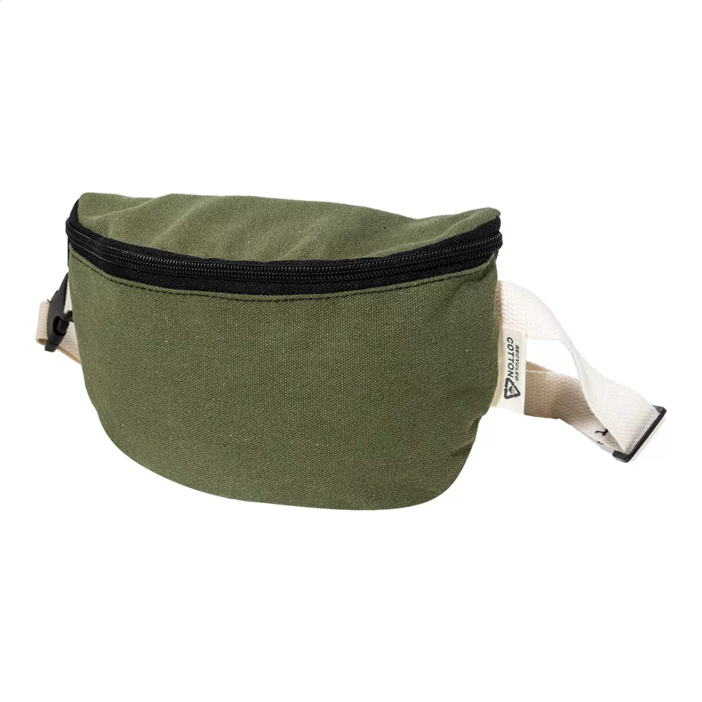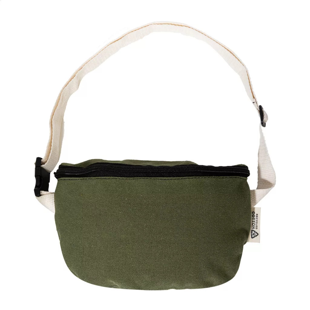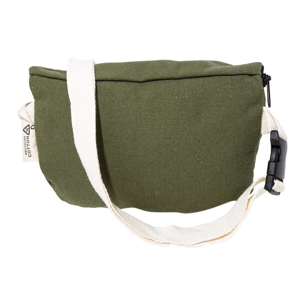 Újrahasznosított vászon övtáska cipzáras rekesszel és állítható pánttal. 70% újrahasznosított pamut és 30% újrahasznosított poliészter. Megkülönböztető RPET címkével.