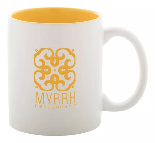 Fehér kerámia bögre színes belsővel, 350 ml. A gravírozott logó a bögre belsejével megegyező színű. Díszdobozban szállítjuk.