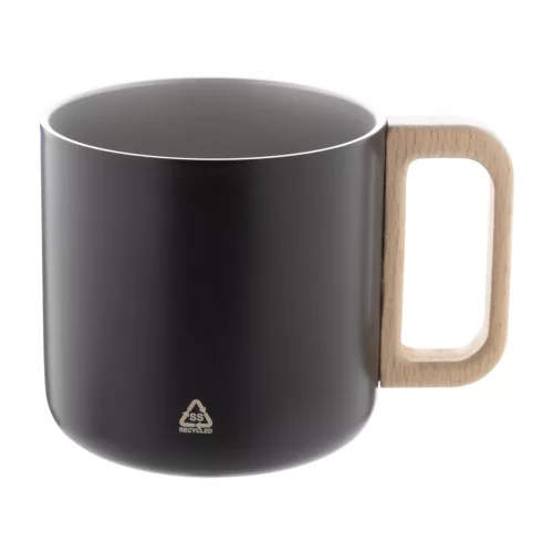 Duplafalú, újrahasznosított rozsdamentes acélból készült thermo bögre fa fogantyúval. 350 ml