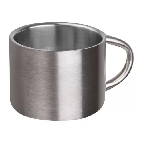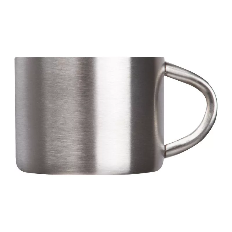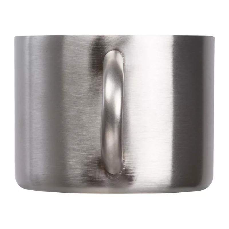Duplafalú rozsdamentes acél eszpresszó csésze, 60 ml-es kapacitással.
