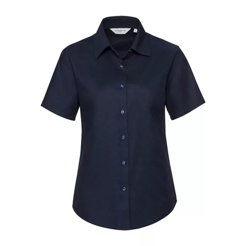 70% pamut, 30% poliészter női rövid ujjú ing. 40°-on mosható, szárítógépben szárítható, könnyű viselet. Testreszabott fazon, klasszikus blúz gallér, lekerekített szegély, cseregombok. 135g/m²