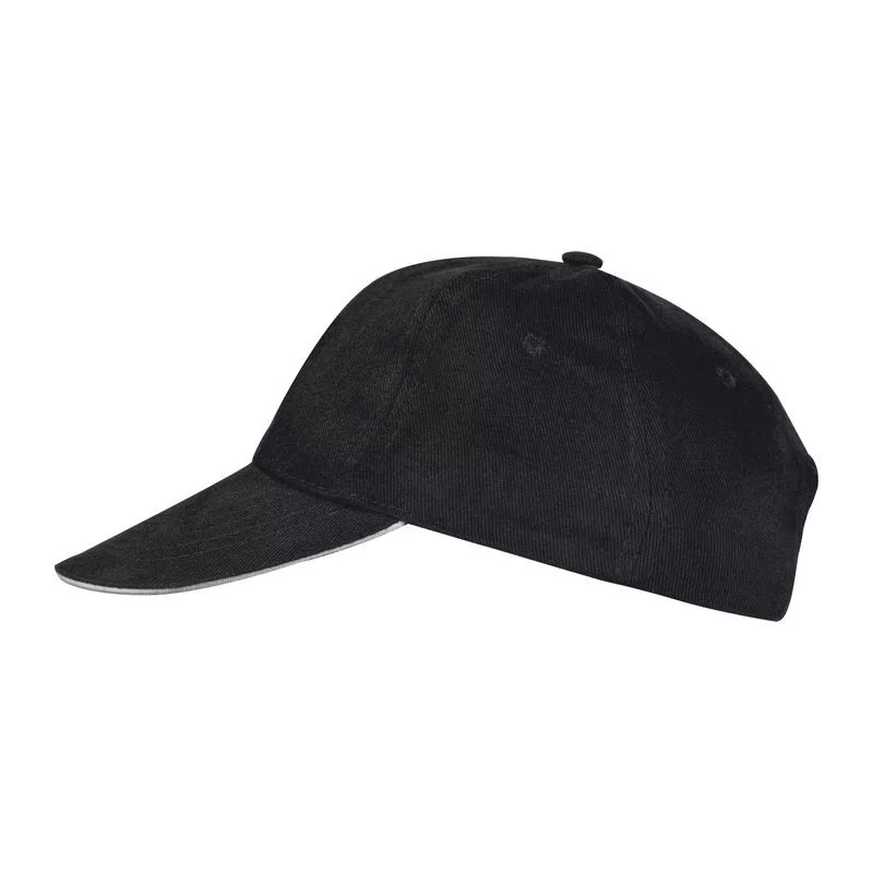 6 paneles AZO-mentes 100% pamut baseball sapka. Mérete könnyedén állítható a sapka hátsó részén található erős fém csat segítségével. A termék több színben elérhető. 260 g/m²