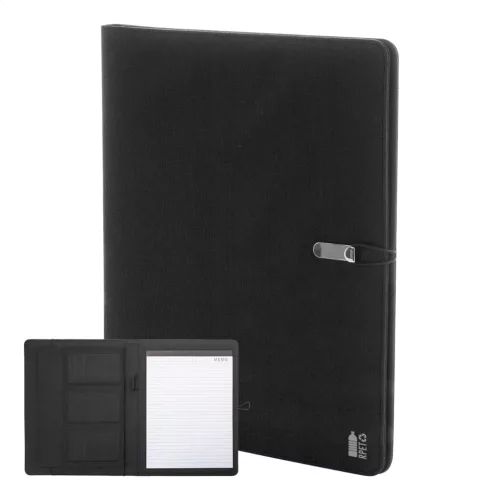 A4 méretű, 300D RPET poliészter iratmappa 25 vonalas lappal és belső rekeszekkel.