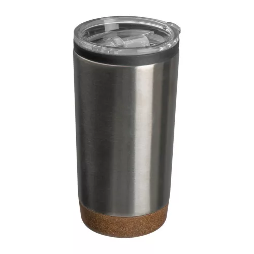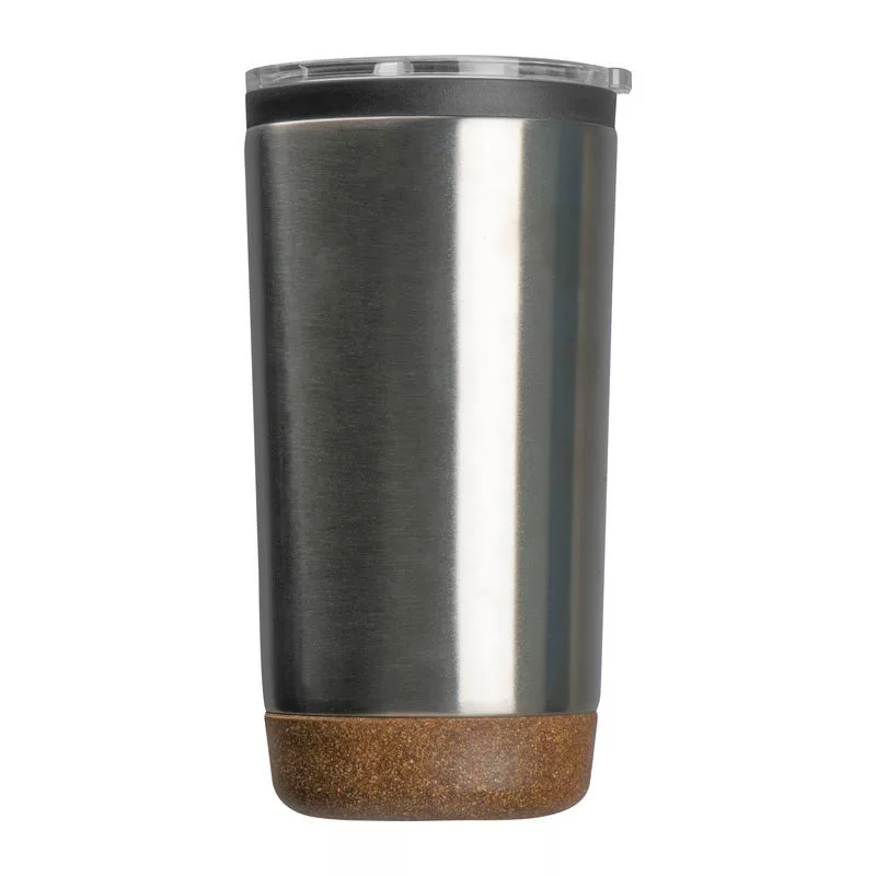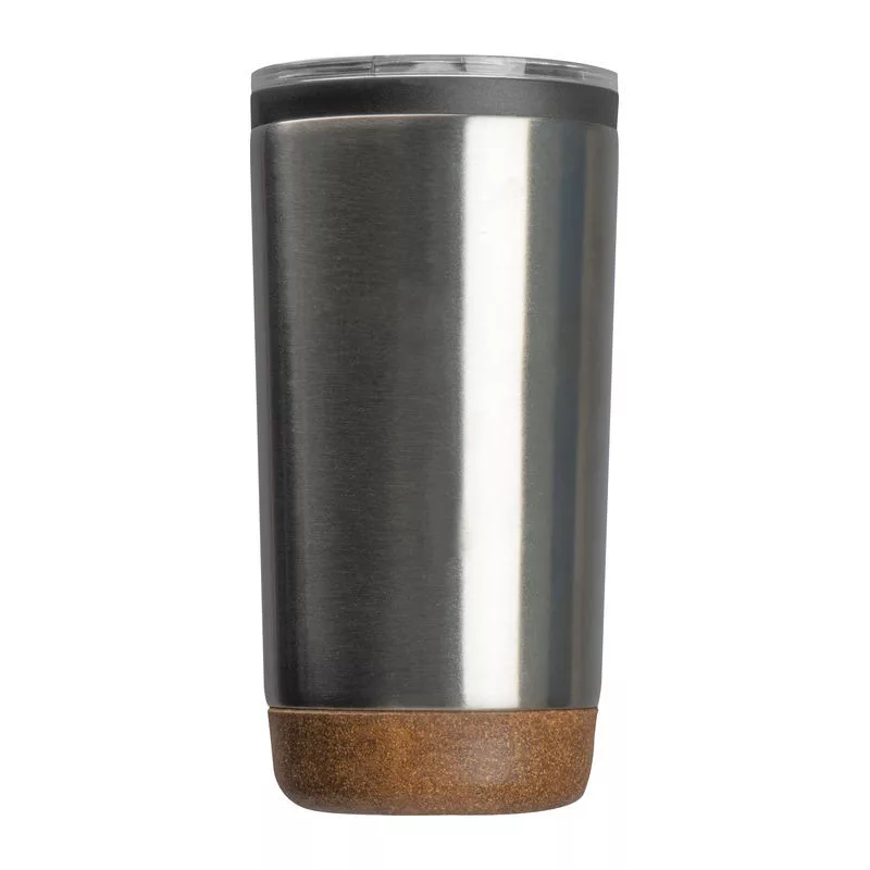 Elegáns duplafalú thermo utazóbögre, rozsdamentes acélból (600 ml), parafa talppal.