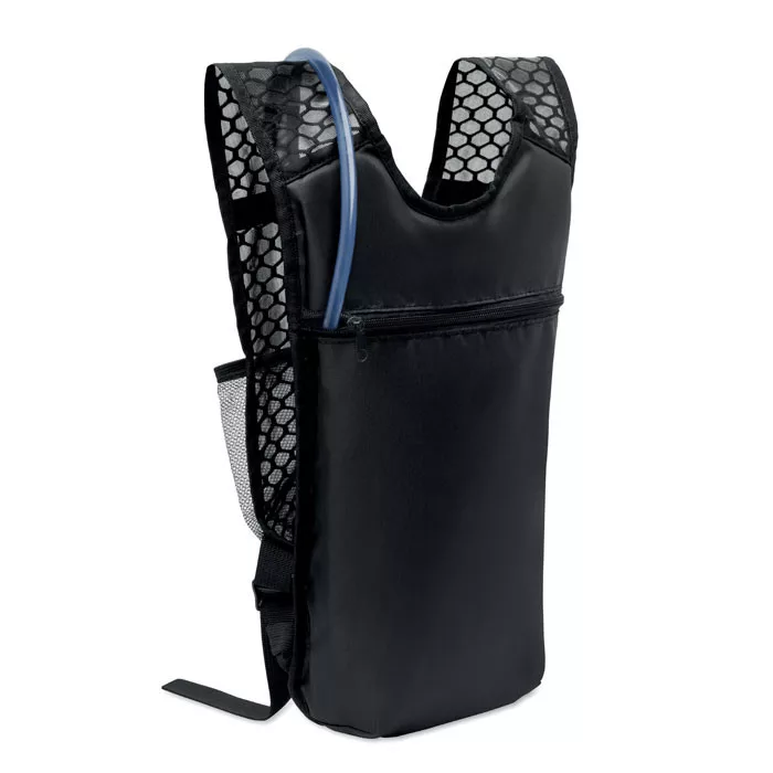 Víztartályos sport hátizsák vízlepergető 420D PU/nejlon anyagból, hálós részletekkel. 1500 ml-es EVA víztasakot tartalmaz PVC csővel és zárral. Könnyű, tartós, ideális szabadtéri tevékenységekhez.