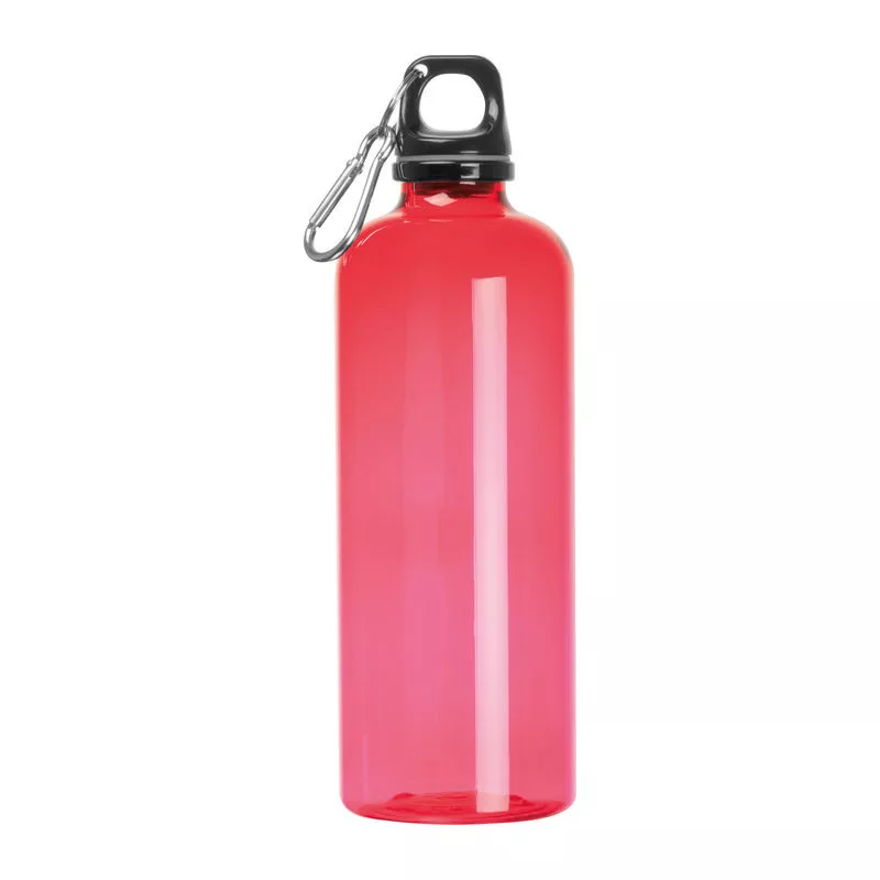 Műanyag (PET) kulacs szivárgásmentes zárral, alumínium karabinerrel és 600 ml-es kapacitással. A logót a palackra nyomtatjuk.