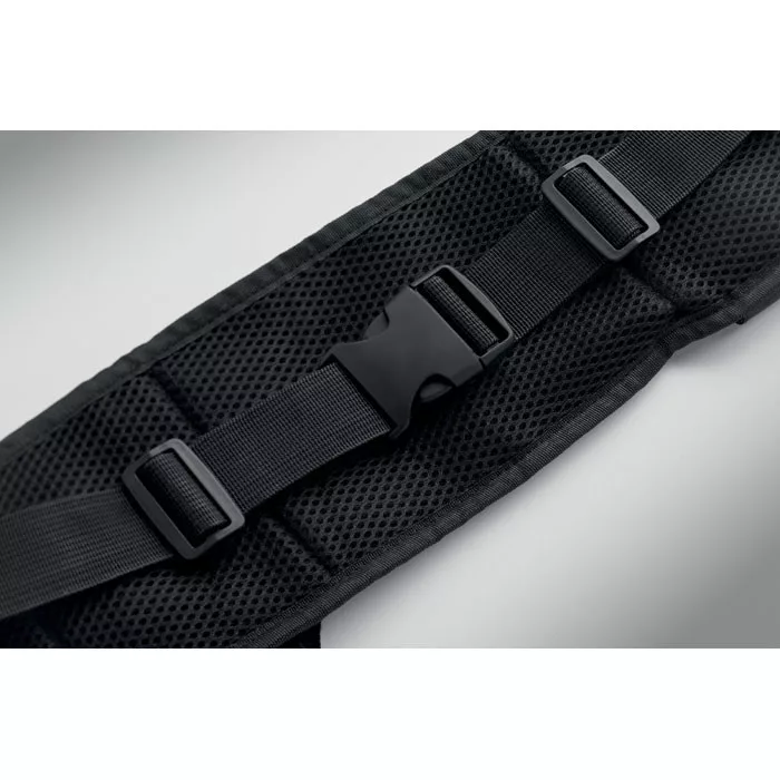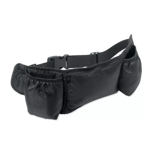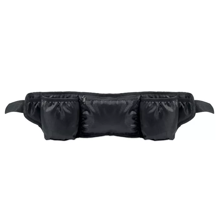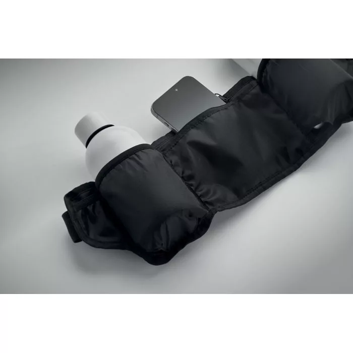 Sport övtáska futáshoz és túrázáshoz, 420D RPET poliészterből, hálós hátoldallal. Két palacktartóval, központi cipzáras zsebbel és állítható pánttal. Könnyű és tartós.