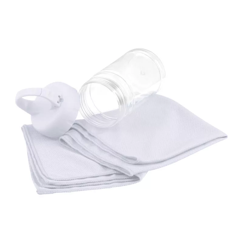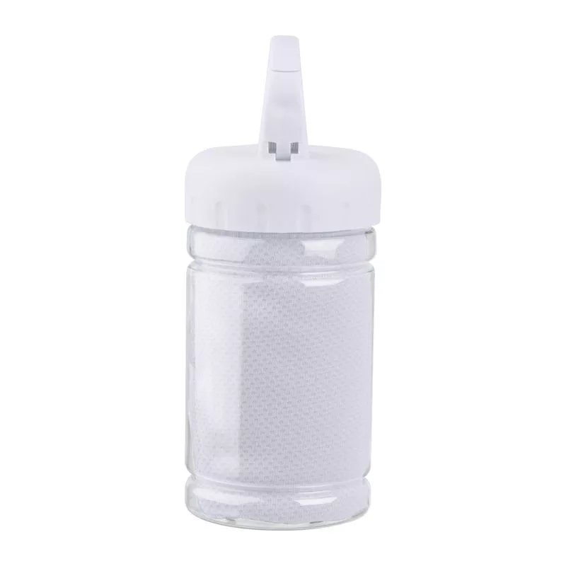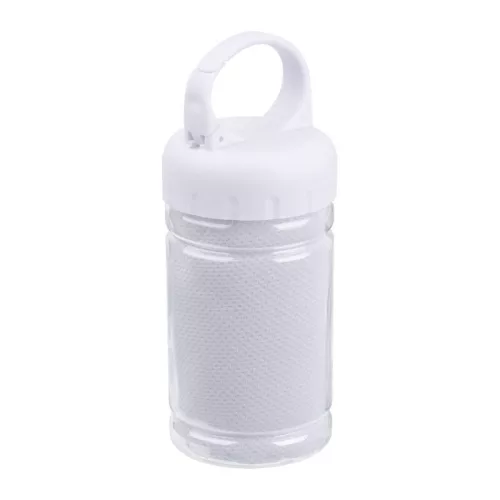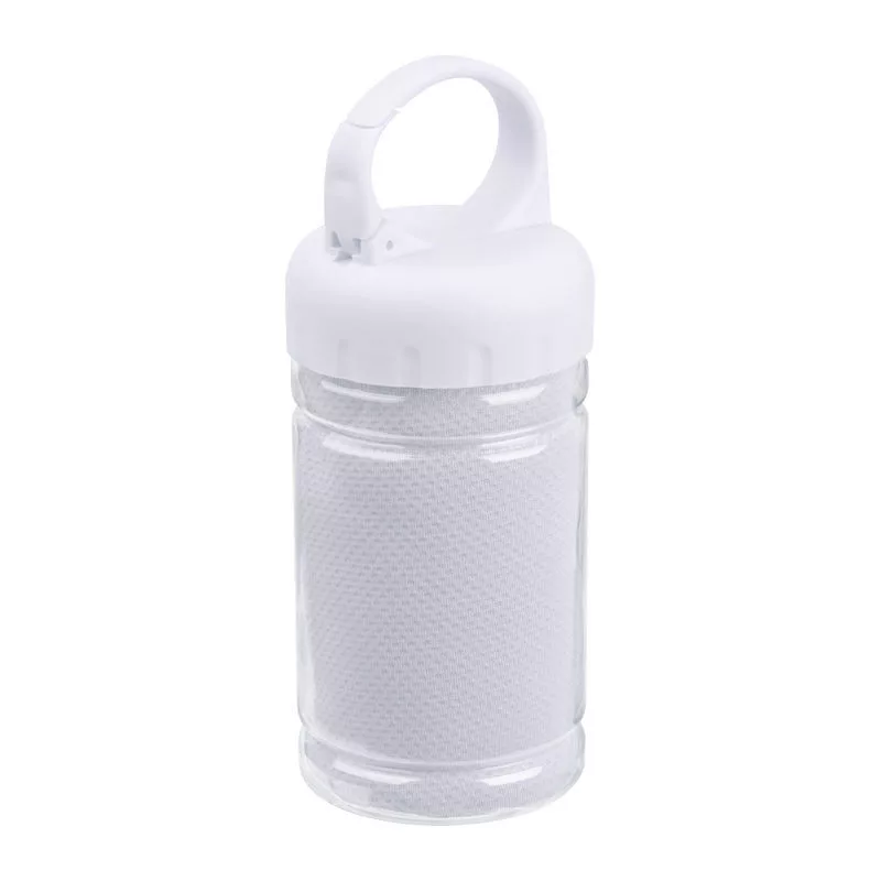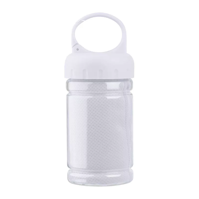 Nagyszerű társ a sportoláshoz! Mikroszálas törölköző egy műanyag palackba csomagolva, mely karabíneres foganytúval van ellátva. A törölköző mérete: 79*29cm.