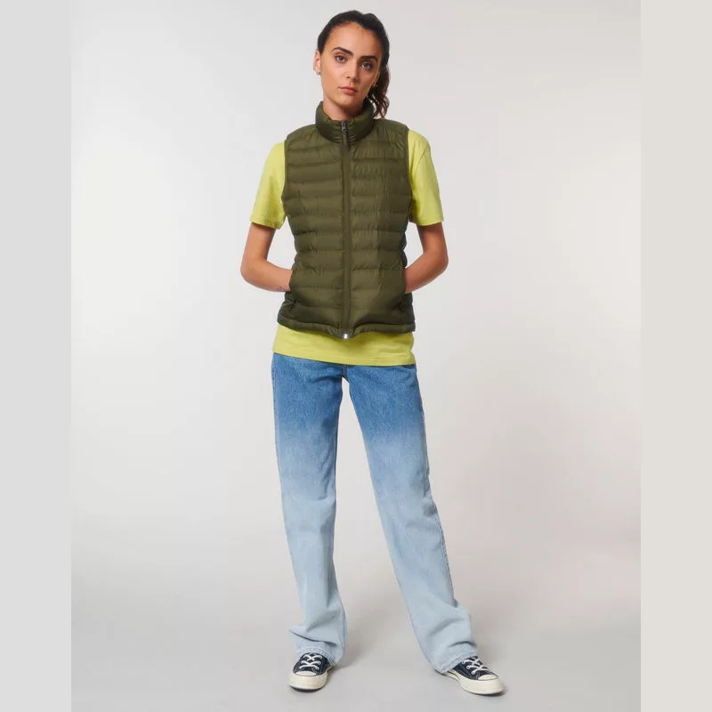 Elegáns és praktikus, ujjatlan mellény magas gallérral, steppelt kialakítással. A cipzáras zsebe révén előnyös megjelenést is biztosít.