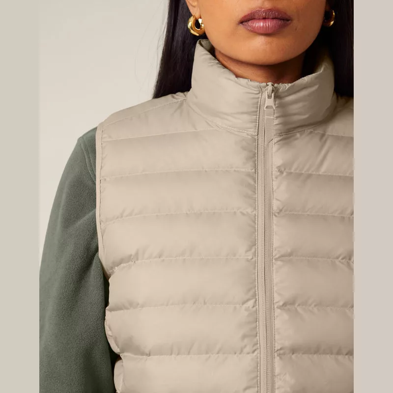 Elegáns és praktikus, ujjatlan mellény magas gallérral, steppelt kialakítással. A cipzáras zsebe révén előnyös megjelenést is biztosít.