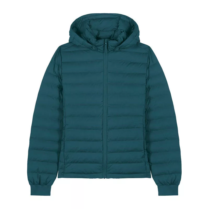 Elegáns steppelt dzseki magas gallérral, levehető kapucnival, állítható szegéllyel és letisztult cipzáras zsebekkel. Karcsúsított.