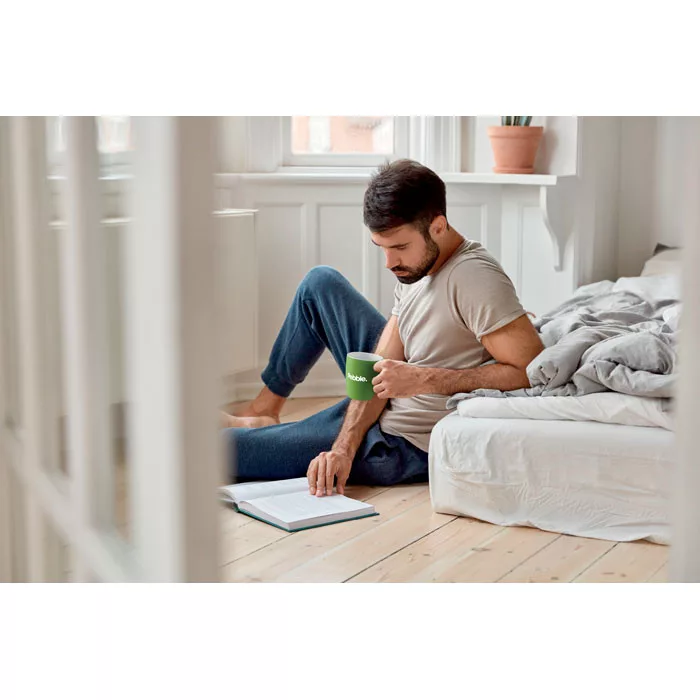 290 ml-es kerámia bögre hullámkarton dobozba csomagolva. Egy egyszerű színes bögre a kedvenc reggeli kávéjához vagy teájához.