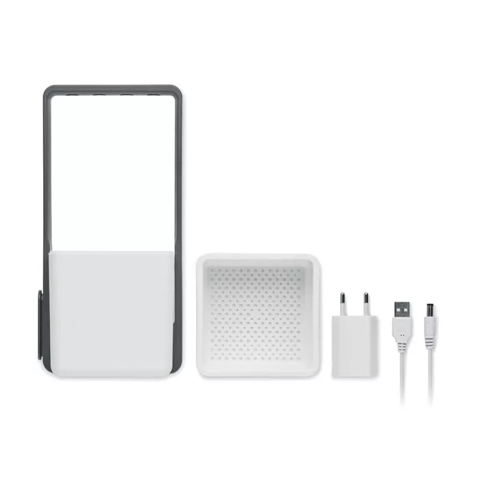 Szobakert 4 LED-es növénynevelő lámpával, PP és ABS anyagból. Tartalmaz 1 műanyag cserepet, 1 szűrőt és 1 USB kábelt, A/C adaptert. Alacsony feszültségű bemenet: 5V. Az Egyesült Királyságban való használatra nem alkalmas.