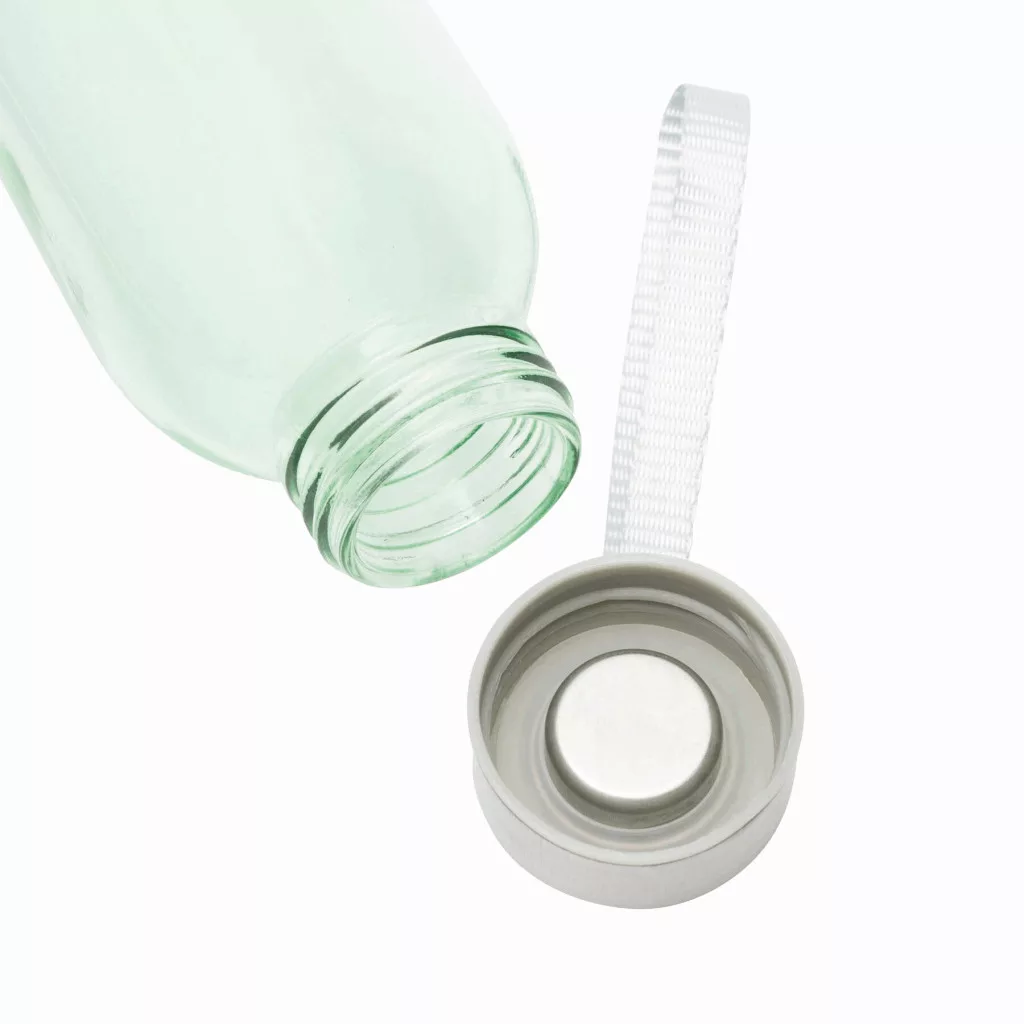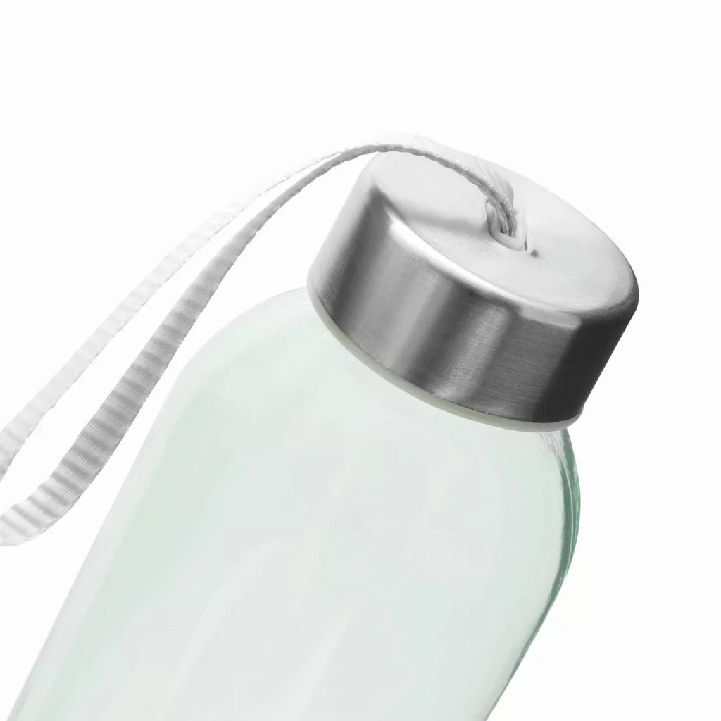 TAKE SMART üvegpalack, kulacs: rozsdamentes acélból készült csavarozható fedél szilikon tömítéssel és hordozóhurokkal, kapacitása kb. 500 ml, fehér dobozban