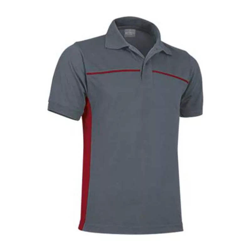 Galléros piké póló, 50% poliészter, 50% pamut. 210 gr/m2. Erős gallérral és passzéval. Dupla varrással az ujjakon. Elől díszítő csíkkal, 2db egyező színű gombbal. Oldalsó sliccel. Extra anyaggal az esetleges zsebfelvarráshoz.