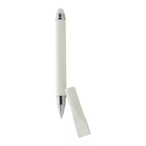 Újrahasznosított papír golyóstoll és érintőképernyős toll hozzáillő színű kupakkal. Kék tollbetéttel.