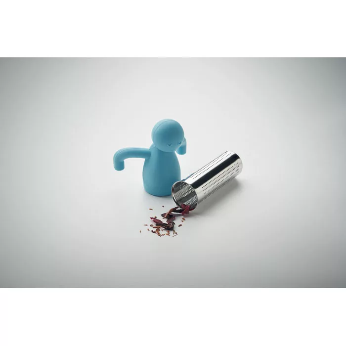 Teatojás emberke szálas teához. Szilikonból készült emberke forma és rozsdamentes acél szűrő.