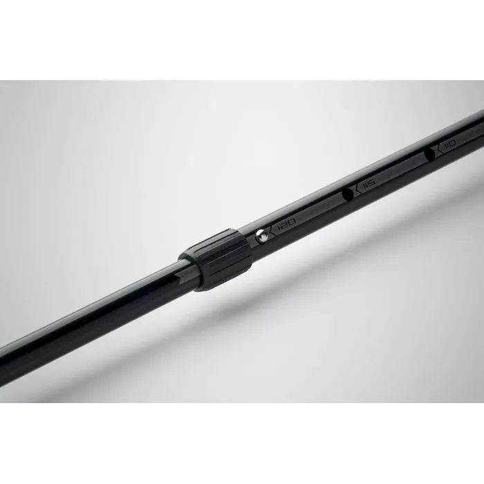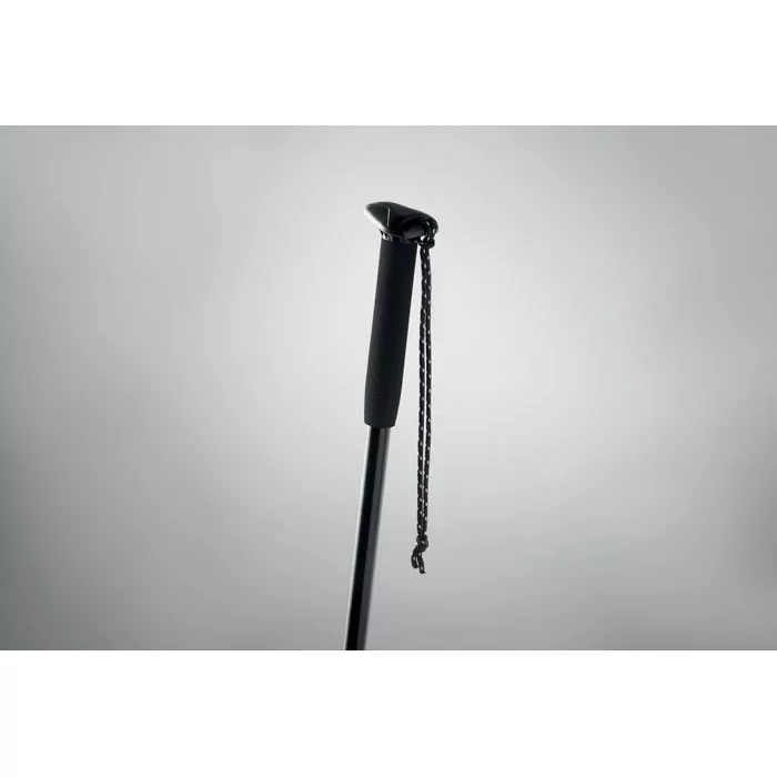 Teleszkópos túrabot EVA markolattal, csuklópánttal, gumi heggyel és sártányérral. 105 és 120 cm között állítható. RPET húzózsinóros tokban. Könnyű és tartós kivitel.